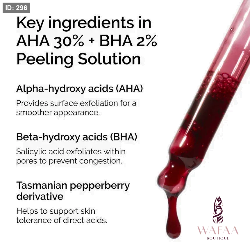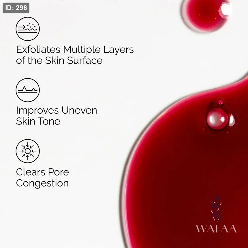 يعمل على تقشير الطبقة السطحية للجلد (بواسطة AHA) وتنظيف المسام بعمق (بواسطة BHA)، مما يجعله فعالًا في علاج التصبغات، الخطوط الدقيقة، والرؤوس السوداء.